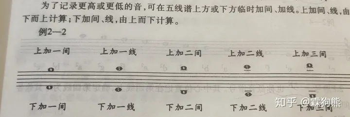 我知道大多同學可能不愿意看圖,那就讓我再說一遍,為了記錄更高或者更低的音,可在五線譜上方或者下方臨時加間加線,加上間,線由下而上計算;下加間線,由上而下計算。(說白了就是對稱,你這明白了沒)